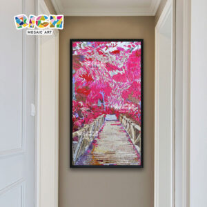 RM-SC07 Pink Cherry Blossom Landscape Bridge Mosaic Cut Painting